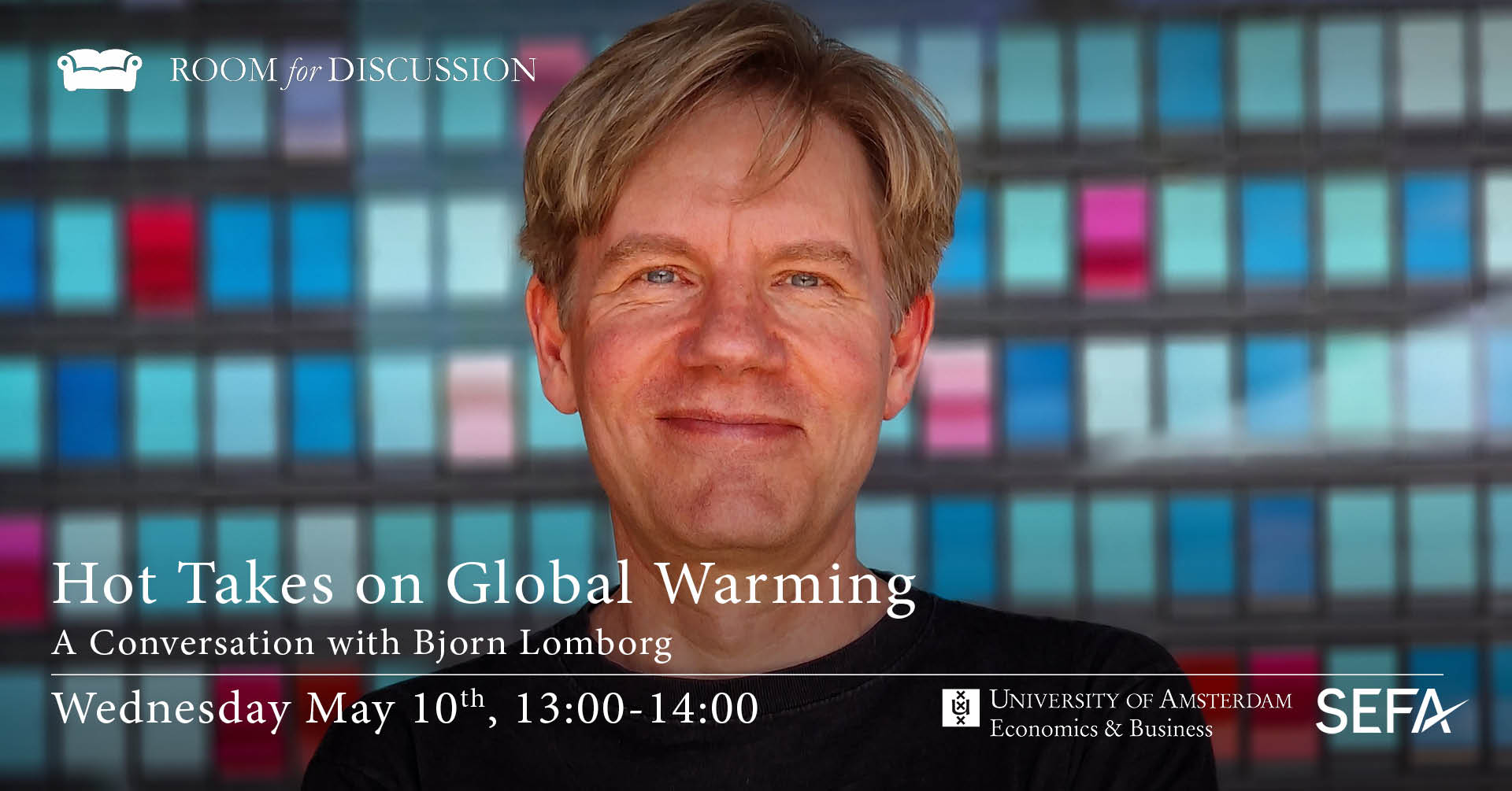 Bjørn Lomborg will join for an interview at Room for Discussion on May 10th, 13-14h in the E-Hall